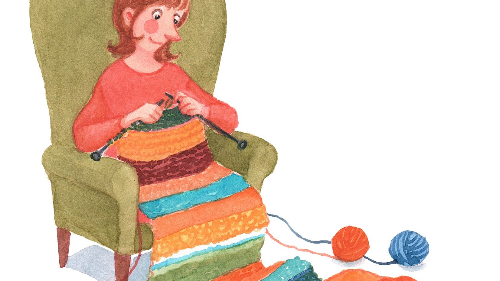 Det har givet hende ro og været med til at holde hendes tanker rolige i en svær tid. Så langt så godt, men nu er hun begyndt at strikke til os alle. Til mine børn, til min mand og især til mig.