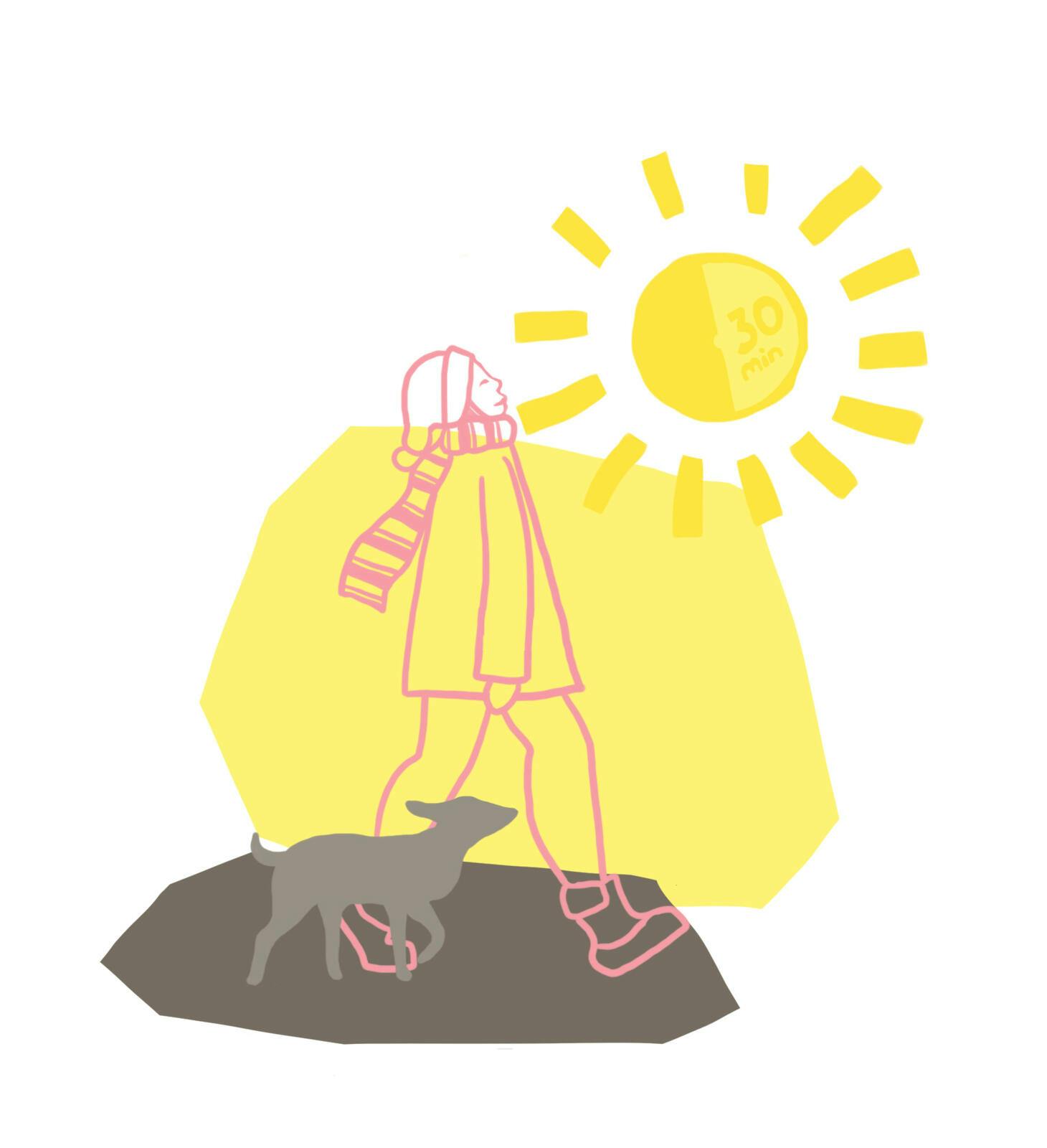 – Uanset om det er øsende regnvejr eller skyfrit, er der altid nok lys udenfor til at stabilisere vores døgnrytmesystem og styrke vores humør – vi skal bare opsøge lyset! Selv går jeg gerne en tur i min arbejdstid. Det burde alle gøre, men det er, som om vi synes, det er lidt syndigt at holde en skemalagt pause som voksen, siger Klaus Martiny.