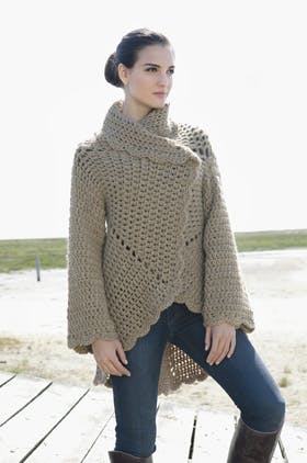 Materialer: "Fauna" (70% økologisk uld/30% babyalpaca/50 g = 60 meter): 850 (950) g beige nr. 1. Hæklenål nr. 9. Lana Grossa-garn fra Mayflower.