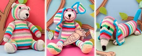 FARVESKIFT - FM: For at få pænest farveskift hækles sidste fm på omg således: Stik nålen ind i sidste m, hent tråden, lav et omslag med den nye farve og træk den gennem alle m på nålen. Fortsæt til næste omg med den nye farve.
