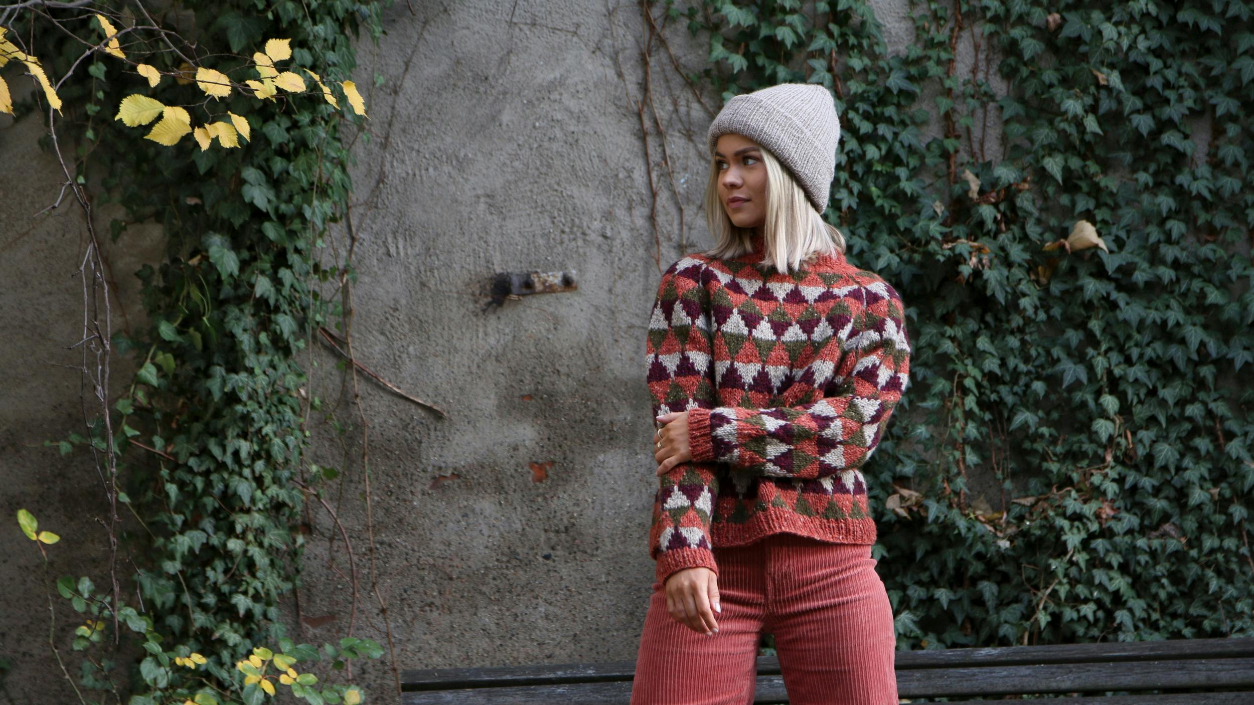 Vi giver dig et bud på årets julesweater. Den er strikket med et grafisk mønster inspireret af træer og det spejlbillede, de giver i vandet.