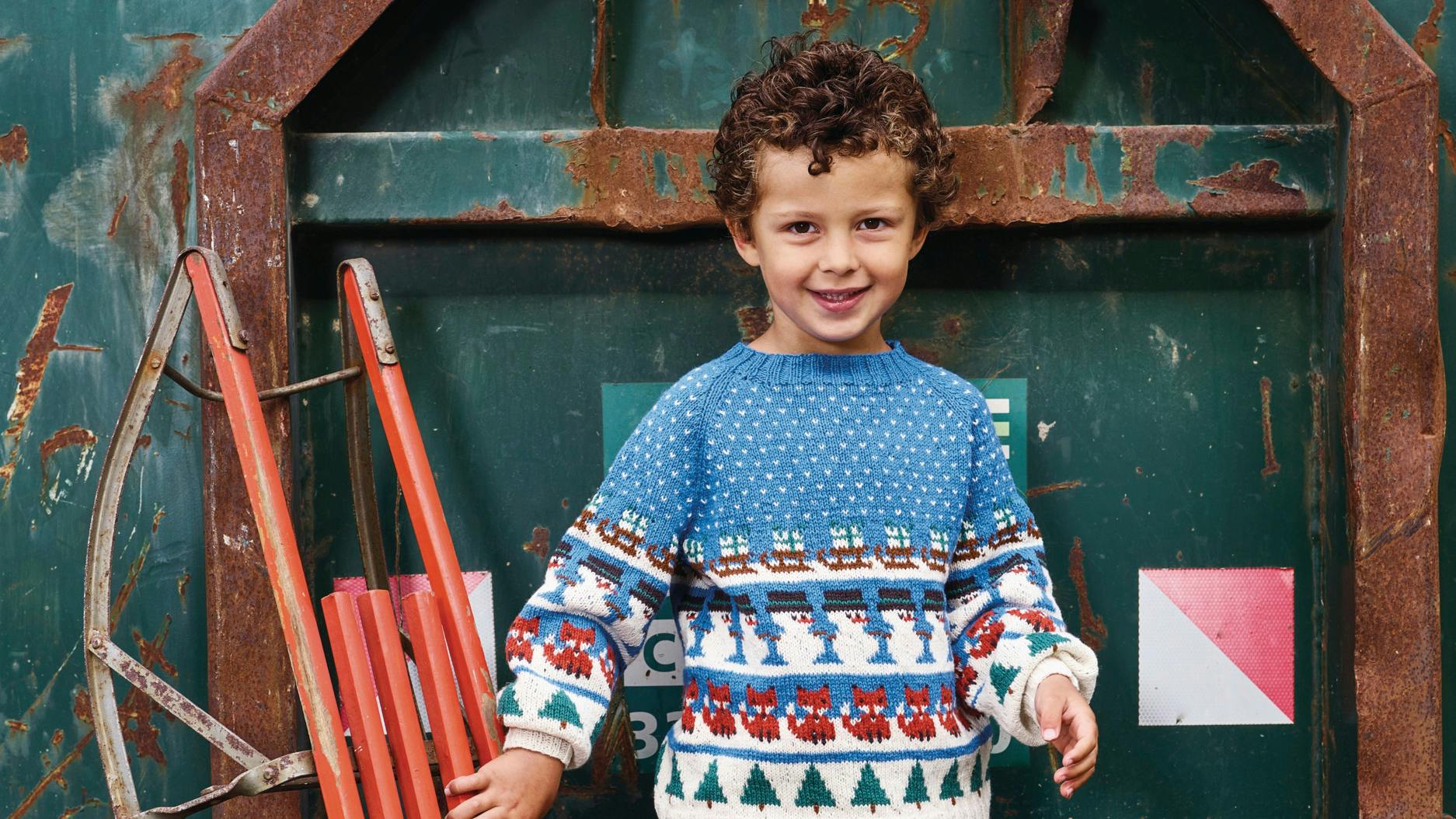 Info: Sweateren strikkes nedefra i 3 dele som siden strikkes sammen til bærestykket.