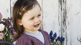 Materialer: "Mini Alpakka" (100% alpakkauld, 50 g = ca. 150 meter): (150) 200 (200) 250 g blomme nr. 4853. Rundp + strømpep nr. 3. (Garn fra Sandnes Garn, tlf. 49 76 39 69).