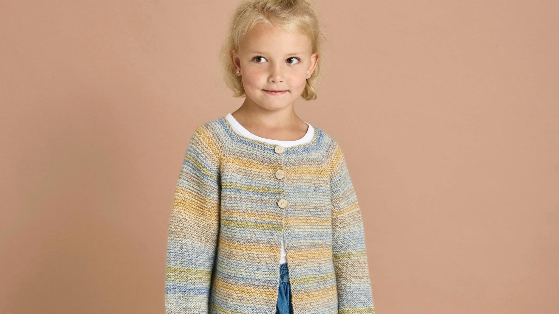 Fortsæt med at tage ud på hver side af 3 raglan-m på hver 2. p (dvs. på hver p fra vr-siden). Når der er strikket 10 retriller (20 p) efter knaphullet, strikkes igen et knaphul på samme måde. Strik det 3. knaphul med samme afstand (fortsæt evt. med knaphuller langs resten af forkanten, hvis du foretrækker det).