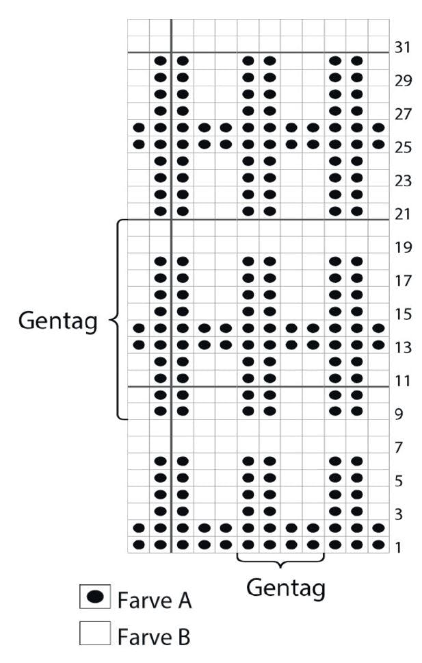 Gentag på hver 4. (5.) 7. (7.) 7. omg i alt 8 (9) 8 (9) 10 gange = 36 (36) 40 (40) 40 m.
