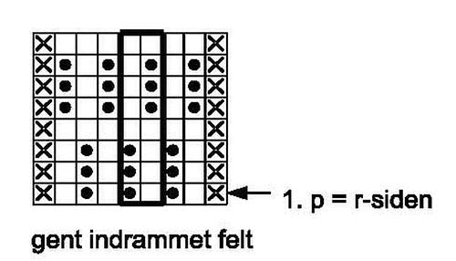 Strikkefasthed: 28 m x 38 p = ca. 10 x 10 cm i mønster på p 3.