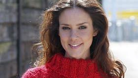 Lille rød blomst: Saml 5 lm til en ring med 1 km. 1. omg: I5 lm, 1 fm om ringen, gtg fra I 6 gange. Bryd garnet og sy denne blomst fast midt oven på den store. Sy den samlede blomst på forstk (se foto).