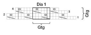 Næste p (r-siden): 1 r, slå om, ✩1 r, dia 3✩, gtg ✩-✩ frem til midterm, 1 r, slå om, 1 r, slå om, gtg ✩-✩ til de sidste 2 m, 1 r, slå om, 1 r.