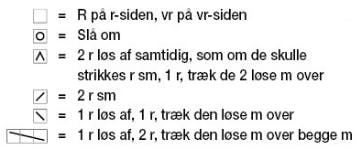 Strikkefasthed: 30 m x 40 p = 10 x 10 cm i mønster efter dia 1.