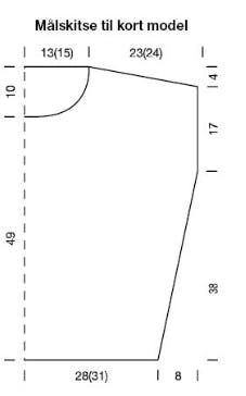 Montering: Spænd delene op, fugt dem og lad dem tørre. Sy skulder- og sidesømme. Hækl 1 rk fastmasker og 1 rk krebsemasker rundt i halsen. Hæft ender.