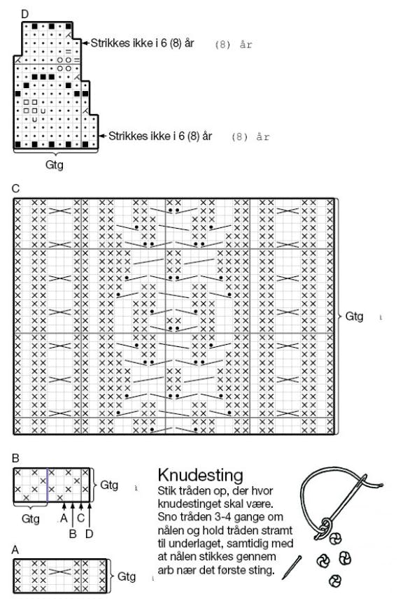 Strikkefasthed: 21 m = 10 cm i mønster efter dia B på p 4½.