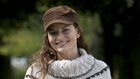 Materialer: "Cosmo" (100% uld/50 g = 62 meter): 400 (450) 400 g beige nr. 302 + 150 (150) 150 g brun nr. 303. Rundp nr. 7 (60 og 80 cm). Hjp til snoninger. Hæklenål nr. 6. (Garn fra Mayflower)