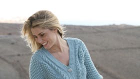 Ærme: Slå 62 (66) 70 (74) 78 (82) m op (inkl. 1 kantm i begge sider). Strik 5 p r. Strik brombærmønster efter dia A med 1 kantm i begge sider. 1. p = vr-siden. Når arb måler 21 (21) 20 (19) 18 (17) cm. Luk til ærmekuppel i begge sider på hver 2. p: Luk 3 m 1 gang, 2 m 3 (3) 3 (4) 4 (4) gange og 1 m 0 (1) 2 (2) 3 (5) gange, luk derefter 2 m i begge sider indtil arb måler 27 (28) 28 (29) 29 (30) cm, luk så 3 m 1 gang i begge sider, luk rest m. Arb måler ca. 28 (29) 29 (30) 30 (31) cm.