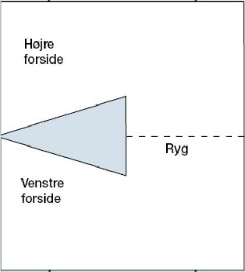 Højre forstk/ryg: Strikkes fra siden og ind mod midten.