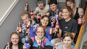 Familie Journals testhold, husholdningslærerne Kirsten Stoltze Møller og Kim Petersen fra Sorø Husholdningsskole har denne gang fået assistance fra en gruppe cola-kendere, en flok af skolens elever.