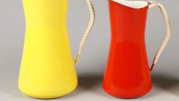 Men også de farverige gryder og kander i emaljeret jern kaldet Købenstyle-serien findes i mange hjem.