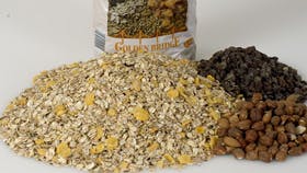 Lover: 35% havregryn, 30% rosiner, bananstykker, kokoschips, 15% hvedeflager, 9% havreflager, 2% hasselnødder og 2% hakkede jordnødder