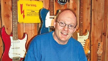 STENSTRUP: Hos H.M.H. Guitars (link fjernet) i sydfynske Stenstrup reparerer Henning Hansen en brugt guitar. Tror man! Men Hansen har lige bygget den. Det er med guitarer som med unge menneskers cowboybukser: Skønt de er splinternye, skal de se brugte ud!