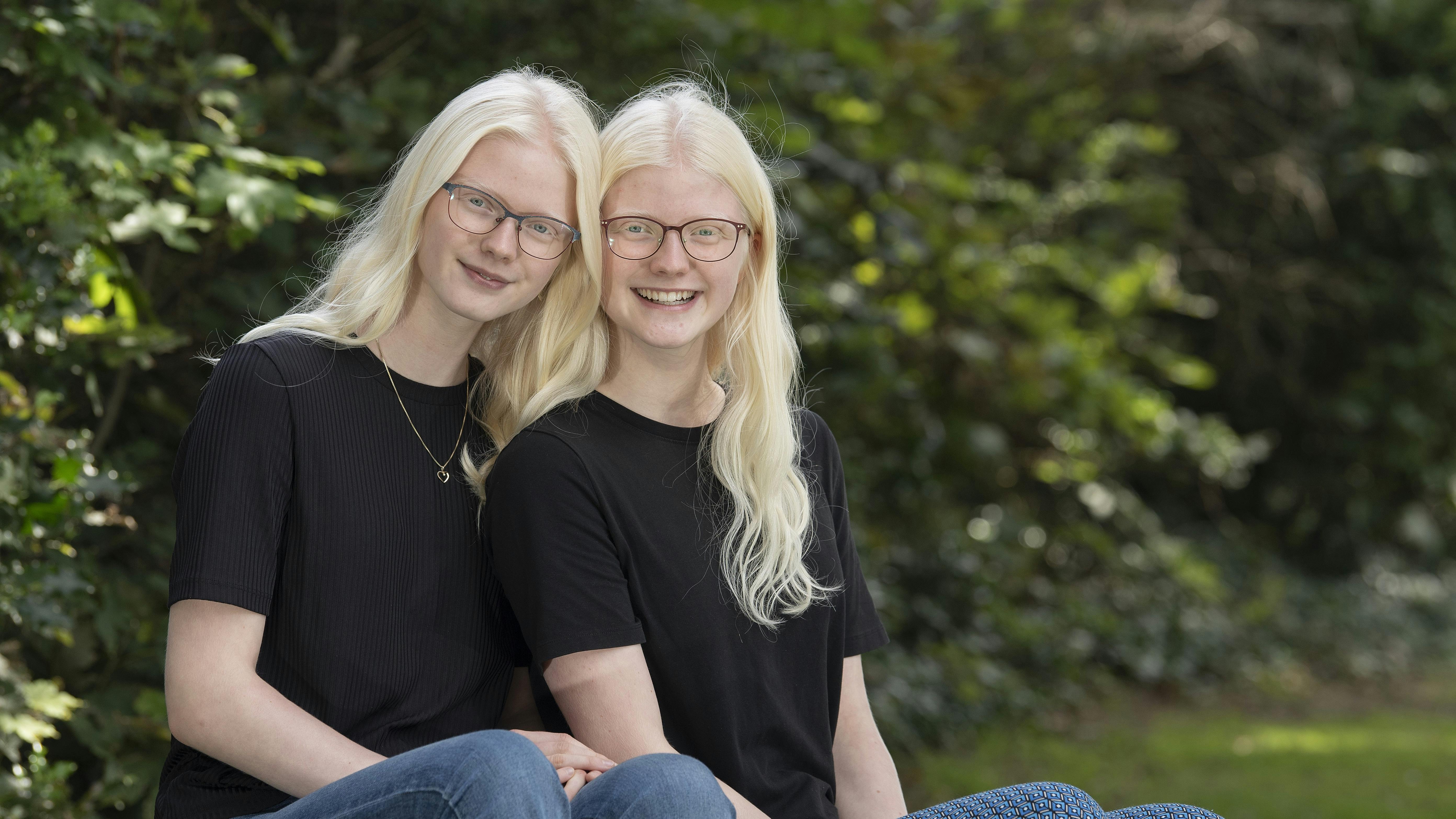 Selv tænker de to piger fra Glamsbjerg ikke over, at de er unikke. De er bare to piger, der altid har set sådan ud, med deres lyse hår og brillerne, der hjælper dem med at se noget.