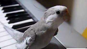 Vi ved alle, at kakaduer har en sjælden evne til at fløjte og synge, men denne lille fyr finder åbenbart en særlig glæde ved at akkompagnere sin medspillende kammerat