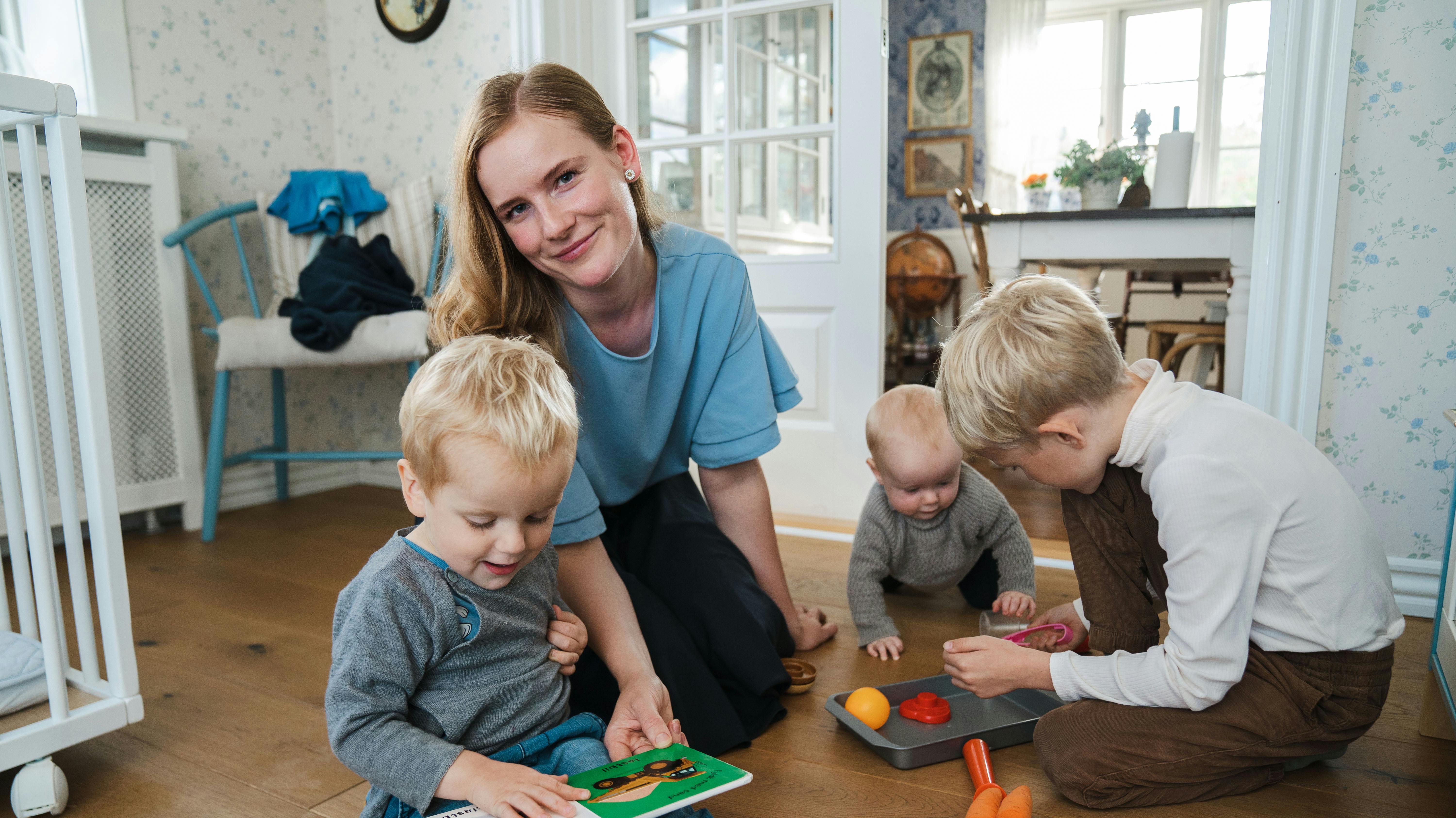 Vækkeuret ringer, børnene skal spise morgenmad og i tøjet, og så er det ellers ud ad døren. Videre til institutioner og arbejde. Den situation kender de fleste børnefamilier. Også Theresa Søndergaard, der for tre år siden valgte karrieren som jurist fra for at blive hjemmegående husmor. I dag passer hun familiens to yngste børn og ordner alt det praktiske i hjemmet.