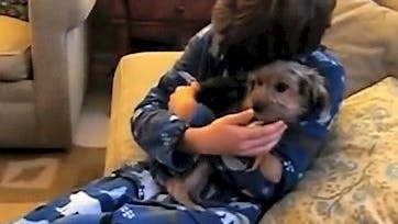 Se videoen her, hvor hans barnebarn får opfyldt sit højeste ønske - en hund!