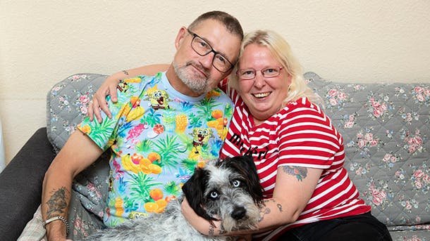 – En dag, da Carina besøgte mig, rejste jeg mig op i sengen og spurgte, om hun ville ringforlove sig med mig. Det svarede hun heldigvis ja til, smiler Jan, der i dag to gange om ugen møder op hos Blå Kors og får sin antabus.