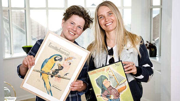 Jette Holm og Sara Munk er begge 34 år, og ud over at være partnere i livet er de også partnere i virksomheden Re-Art. Det er en bæredygtig og socialbevidst virksomhed, hvor de opkøber gamle udgaver af Familie Journal, primært fra 1930’erne, 40’erne og 50’erne, og indrammer dem i 60’er-inspireret stil, så de får nyt liv på væggene.