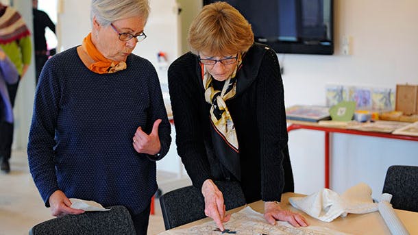 – Jeg læste om Hesselagertæppet med det hele i avisen, og jeg syntes, det lød som en god idé. Jeg har altid været historisk interesseret, og her snakker vi lokalhistorie og helt op til nutiden også. Jeg får en masse nyt at vide, mens vi syr, siger Birte Stampe.
