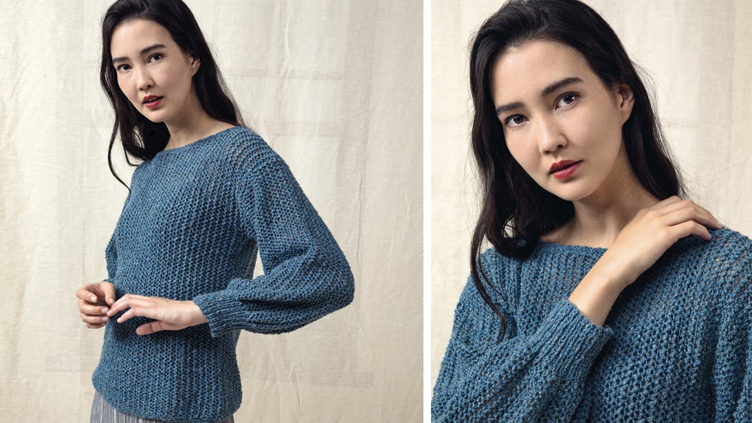 Garn: Lang Yarns Kylie (56 % bomuld, 25 % silke, 13 % uld, 6 % viskose; 50 g = 150 meter)