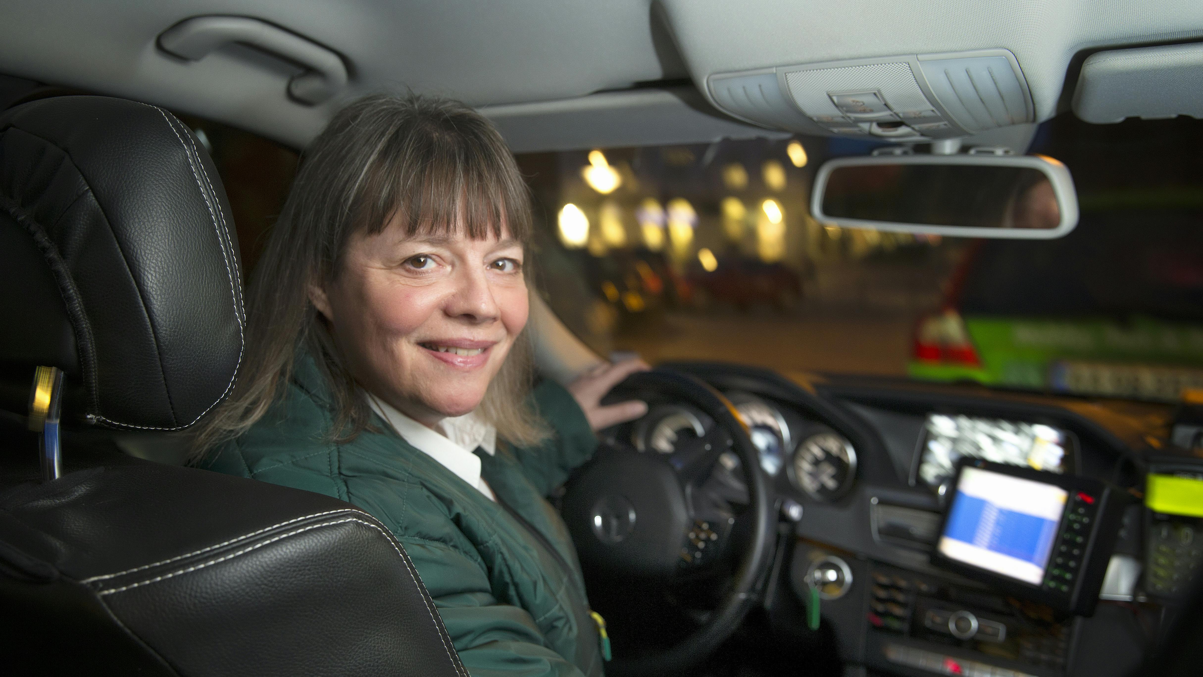 Selv troede Connie også, at hun ville være bange for at køre alene om natten med fremmede, og ofte fulde, mennesker, men frygten er pist væk, når hun stiger ind i sin taxa.