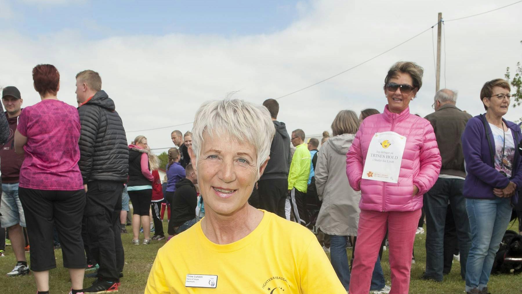 – I sommeren 2012 løb jeg mit første Stafet For Livet. Dengang var mit liv fuldstændig kaos. Et par måneder inden havde jeg aldrig skænket sygdommen en tanke. Jan havde lige afviklet sit ejendomsmæglerfirma, og vi havde besluttet, at vi ville rejse sammen. Vi havde fuld fart på livet og glædede os. Så opdagede jeg pludselig en knude i brystet, siger Trine. – Den første tanke? At det da ikke kunne være rigtigt. Mig, der lever så sundt og gør alt det rigtige. Men det var sandt. Behandlingen var hård: kemo og stråler.Knuden blev fjernet, og nogle lymfekirtler ligesådan, men jeg kæmpede alt, hvad jeg kunne, for det skulle simpelt hen ikke være rigtigt. Jeg ville være rask. Trine hørte om Stafet For Livet, som Kræftens Bekæmpelse havde arrangeret, og hun fik stablet et hold på benene, der skulle løbe og samle penge ind til foreningen. ”Trines Hold” kom det til at hedde, og det var første, men ikke sidste gang, at holdet kom på banen. Jeg var tynd, jeg havde mistet håret, men jeg løb, og jeg ved, at det gav min mand og min søn håbet om, at jeg ville overleve. Hun blev raskmeldt, men allerede året efter ramte skæbnen igen. Læs også om en anden stærk kærlighed
