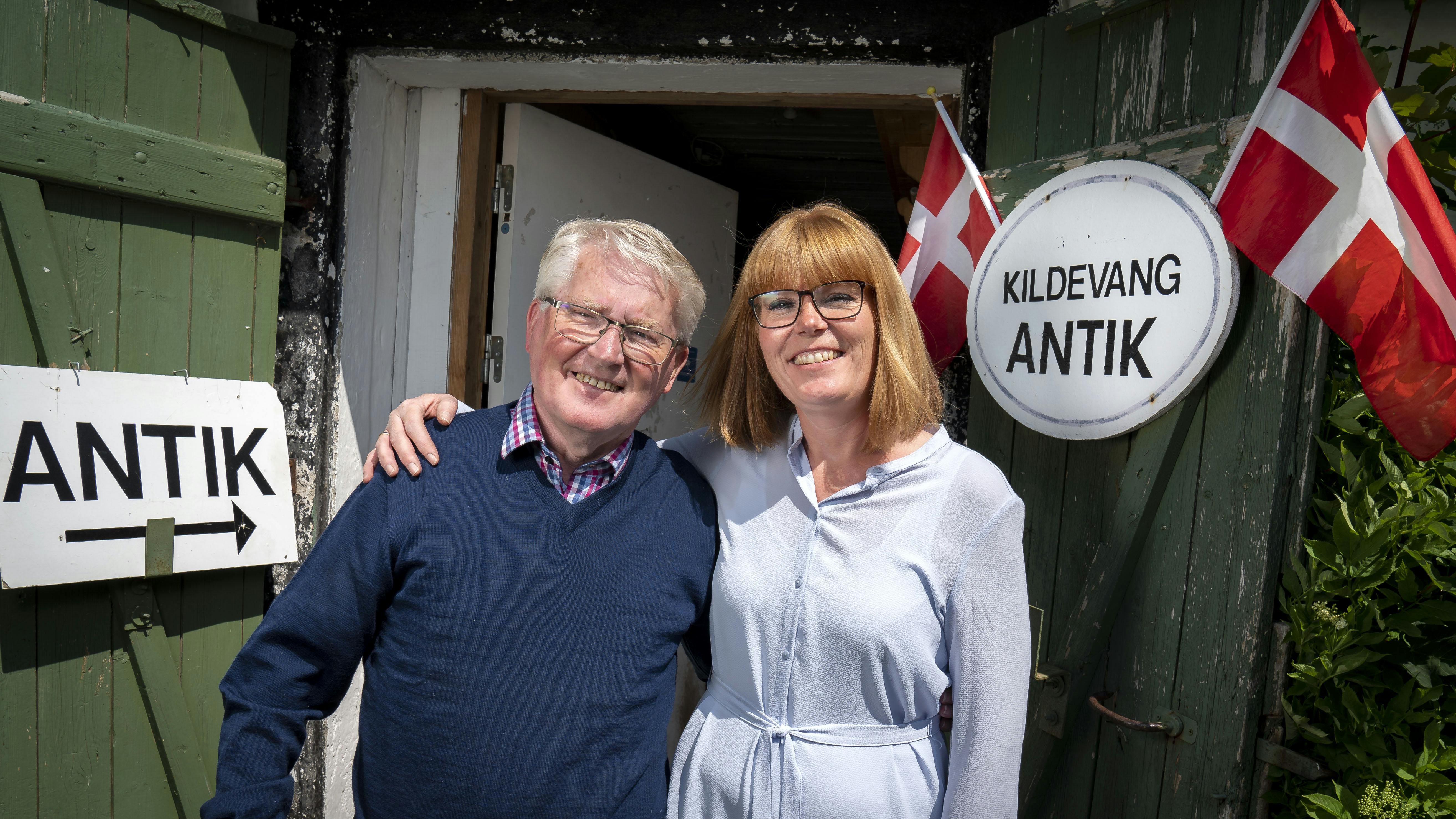 Det bugner af kuriositeter, når man træder ind på gårdspladsen til Kildevang Antik i den lille landsby Hammer uden for Næstved, og det kræver mere end almindelig god tid at få set på det hele. For ud over butikken og gårdspladsen, der er overdækket af et stort festtelt, er også lageret i en af gårdens staldbygninger fyldt op fra gulv til loft med møbler, lamper og stablede kasser med fund fra dødsboer, markeder og messer.