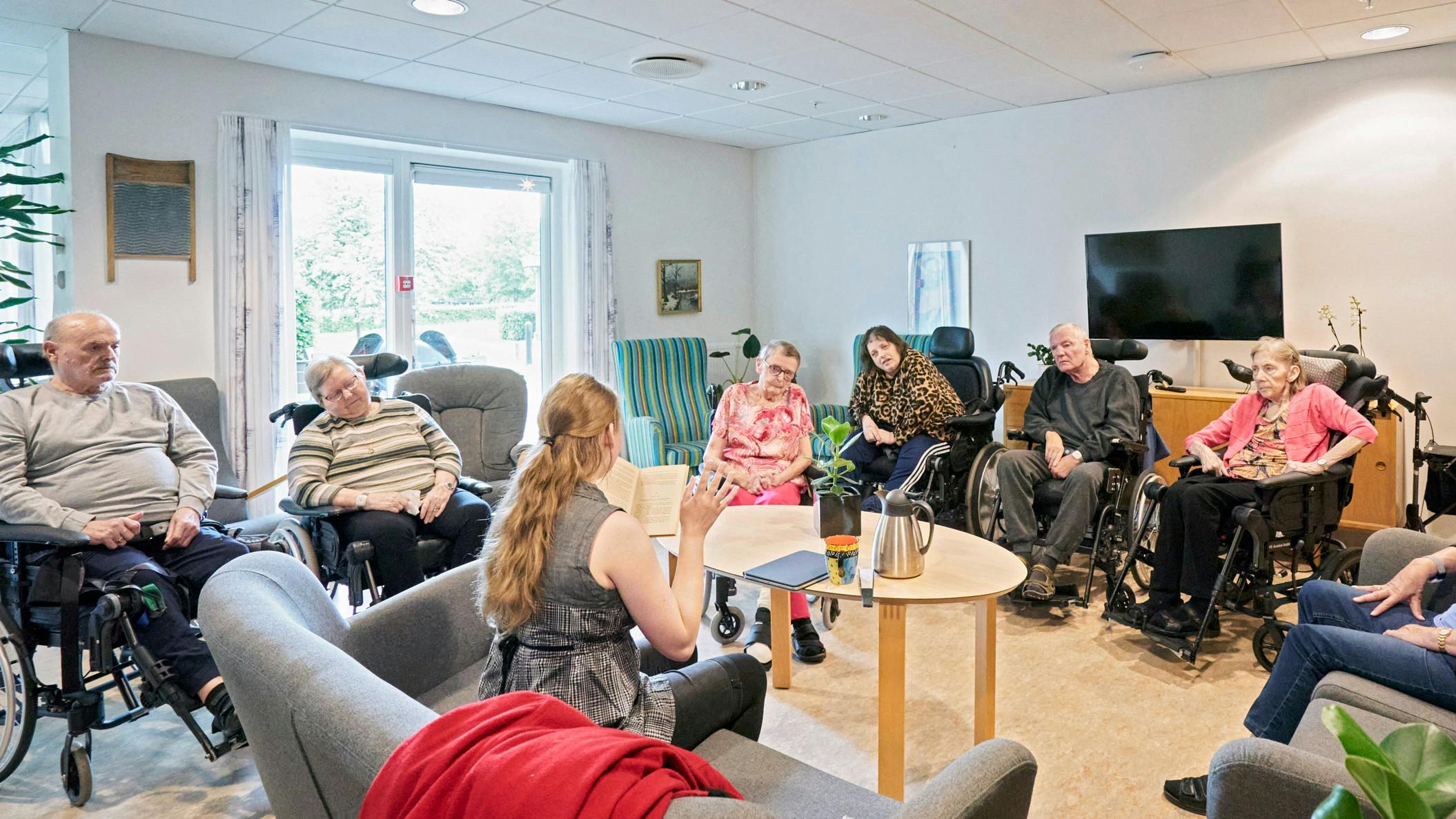 Deltagerne i læsekredsen er alle op i årene. Nogle er demente, andre bor på plejehjemmet, fordi de skal have hjælp til noget praktisk, men de har alle noget til fælles: De elsker gode historier.