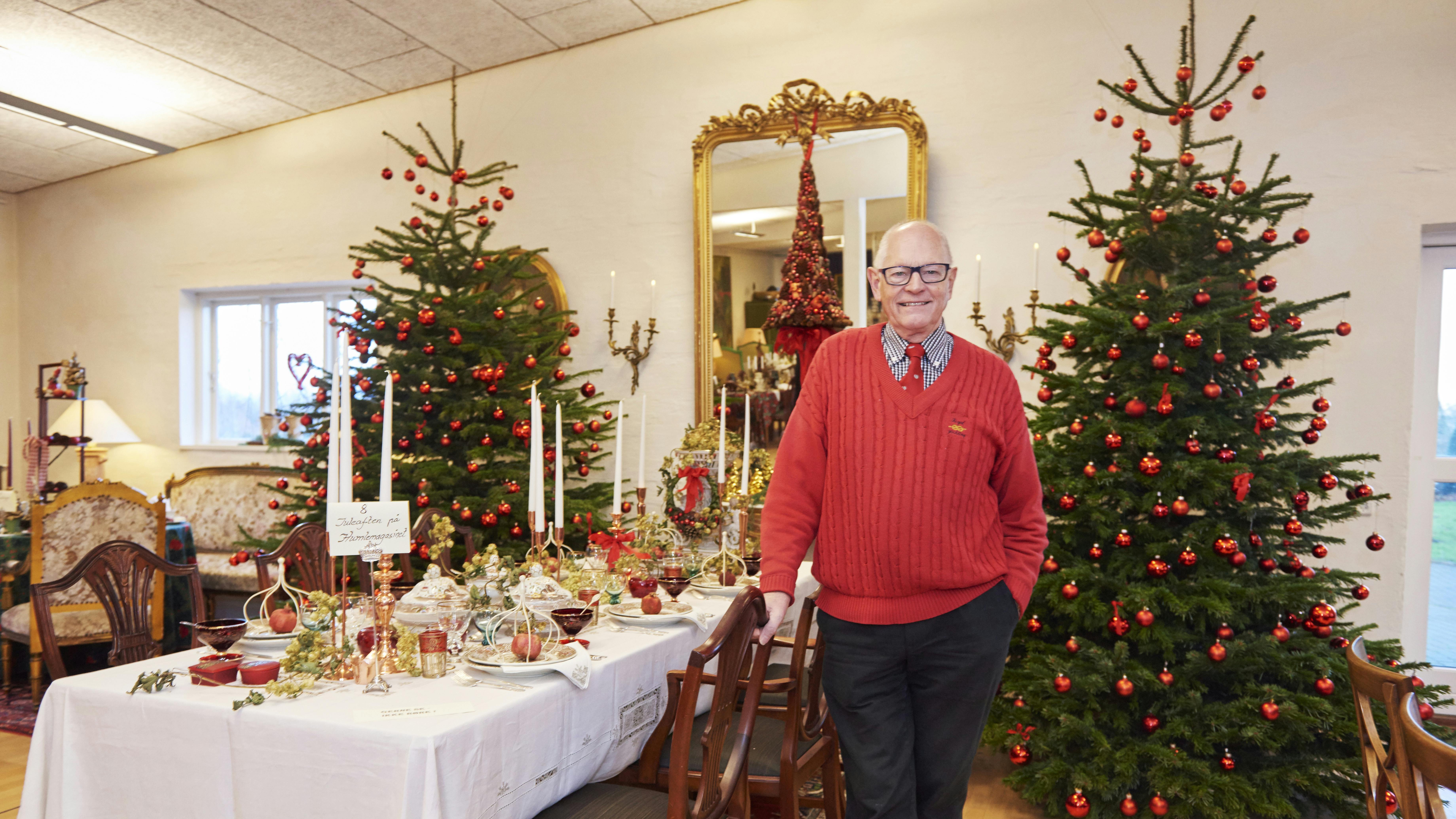 – Det er blomsterdekoratøren Jan Buch, som fik sin debut her på stedet sidste år, der har dækket og pyntet bordene. Men jeg har udvalgt kaffe- og spisestellene blandt mine mere end 100 stel. Der skal jo helst være en masse nyt at kigge på hvert år, siger 74-årige Peder Pedersen, som er en af stedets to daglige ledere.