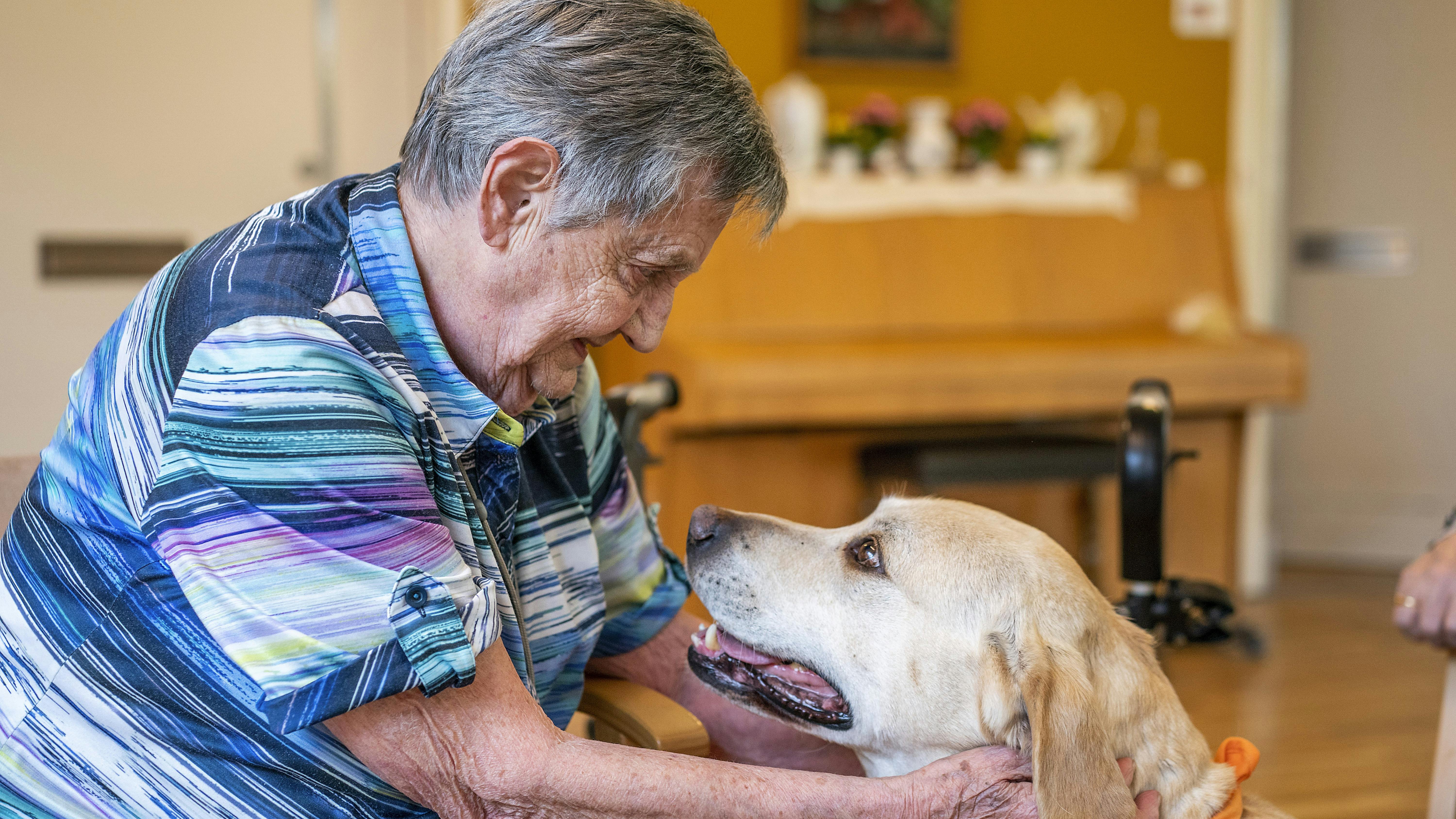 – En besøgshund kan give beboerne noget at være fælles om. Bare fordi to mennesker er flyttet ind på det samme plejehjem, behøver man ikke absolut at have noget til fælles, men når der kommer en glad og logrende, kærlig hund ind i dagligstuen, så giver det nogle nye fællesskaber, hvor man husker tilbage på det liv, man har haft og falder i snak med de andre, uden at det bliver påtaget, siger Eva.