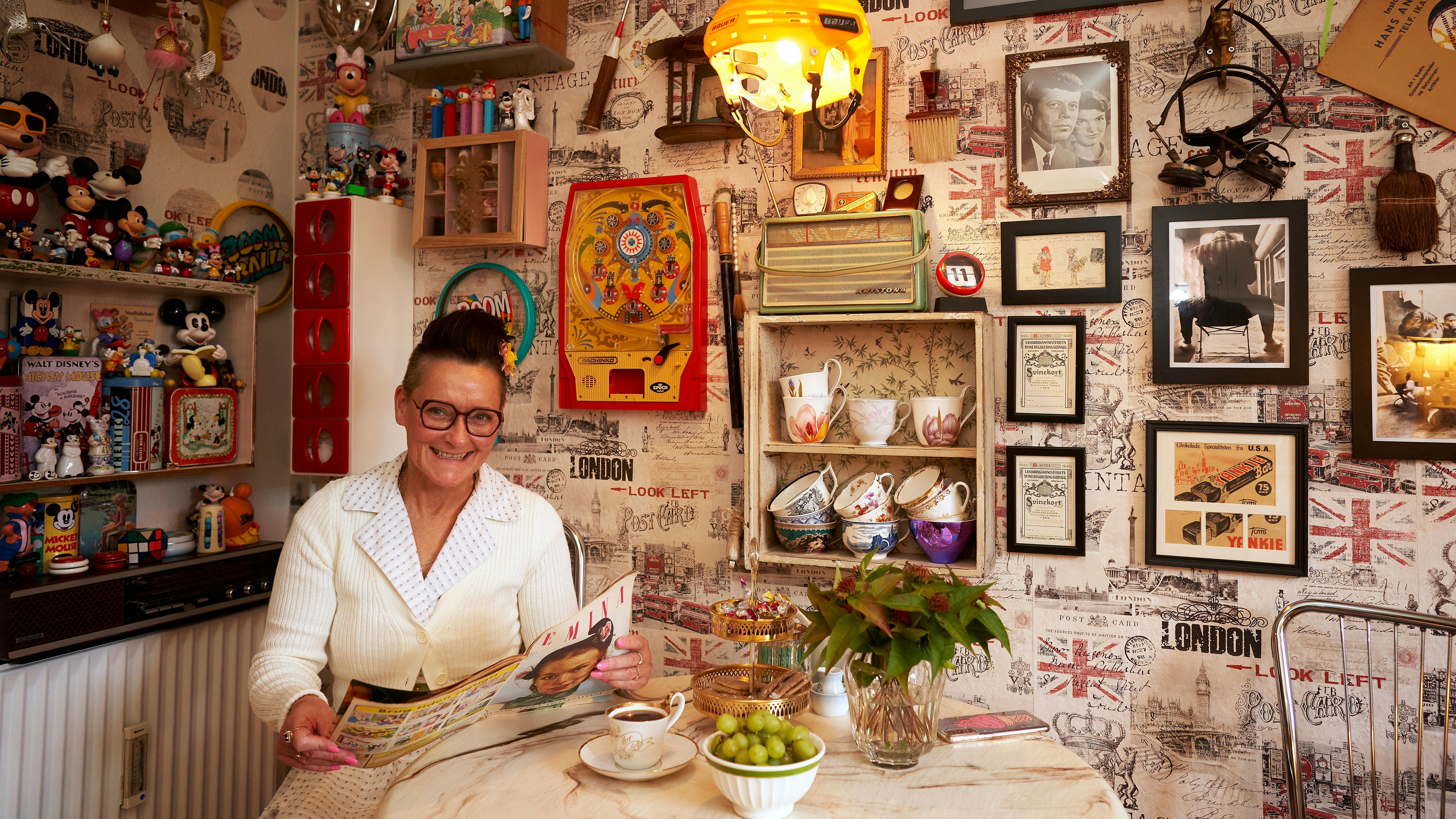 En kjole, der mindede hende om noget fra en Morten Korch-film, satte det hele i gang for Maria Magdalene Olterbech fra Herning. Hun er 54 år og købte kjolen i en genbrugsbutik for en god håndfuld år siden. Siden er mange flere kommet til, og det er ikke kun kjoler og anden beklædning, der frister, når Maria Magdalene tager sine ugentlige ture til lokalområdets gode genbrugsbutikker. Og det kan ses i hendes hjem, hvor 1950'erne og 60'erne dominerer.