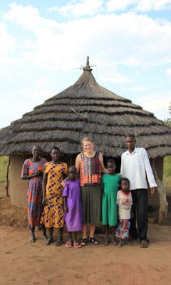 Hun fik seks uforglemmelige uger hos familien Obolot – og kom så tæt på en tilværelse i en fattig, ugandisk familie, som man kan uden at være født der. Hun lærte at spise atap, en slags klæg dej af maltmel og vand, som serveres til mange måltider. Hun lærte at nøjes med et toilet, der bare var et hul i jorden, hvor sære dyr kravlede op og ned. Hun lærte at gå en kilometer efter vand – og bære det hjem på hovedet. Hun lærte at gå i seng, selv om hun igen-igen lugtede af røg fra bålet. Hun lærte at sove med et fremmed menneske helt tæt på sig.