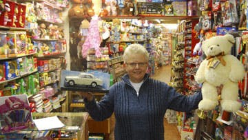 Men selv om folk især her op til jul står som sild i en tønde navnlig når nogle tager barnevognen med ind frygter Joan, at charmen vil forsvinde, hvis hun udvider og moderniserer. Her står hun med en hvid bamse og en Volvo Amazon 1965 det år hun begyndte i butikken, og hvor Tekno-Biler fortsat var populære.