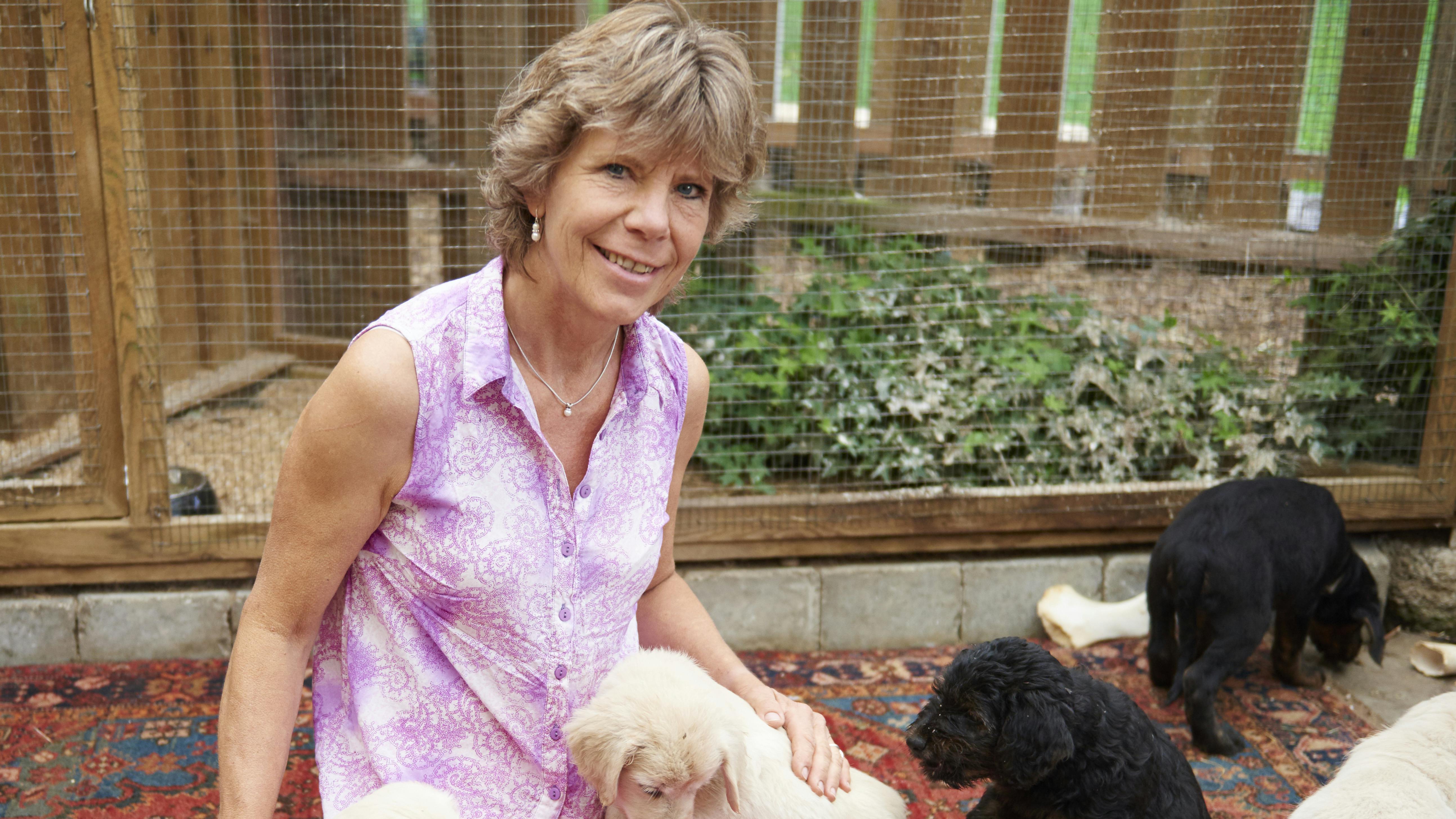 Indtil for relativt nylig havde hun selv tre hunde. Hun fik tæverne parret og satte hvalpene til salg, men to gange måtte hun tage en hvalp retur på grund af uheldige omstændigheder i de familier, der havde købt hundene.