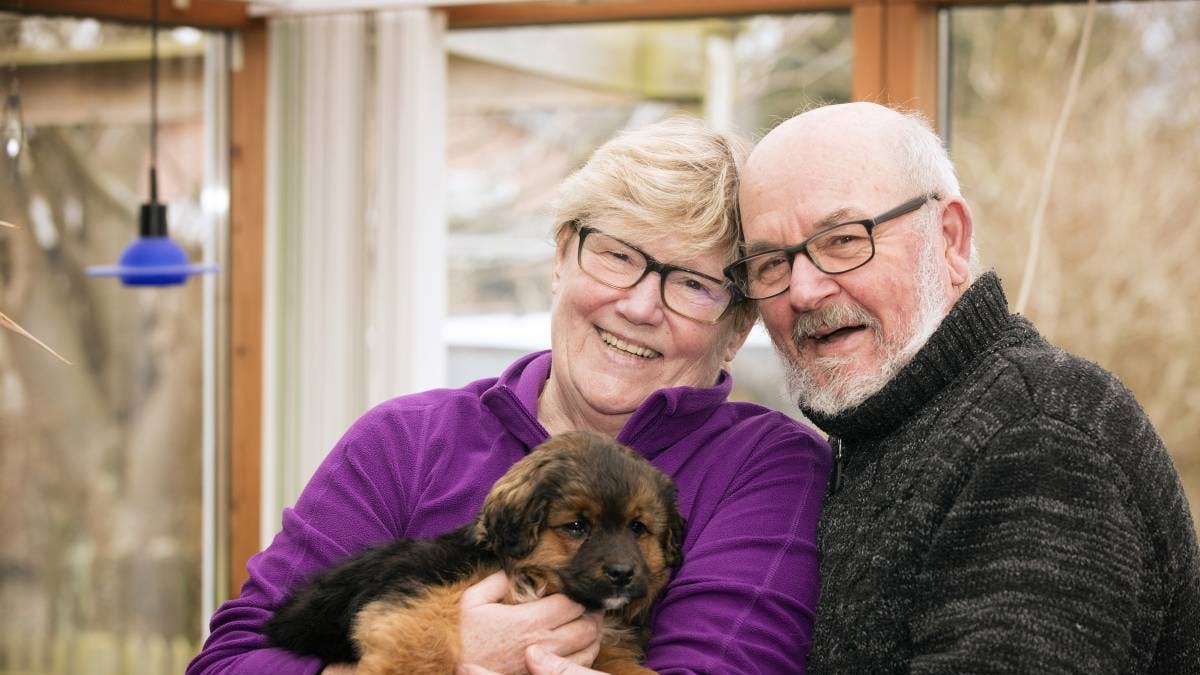 Sofus skal stadig vænne sig til trafik men er tryg ved andre børn og voksne. Og nu erhan ovenikøbet begyndt at blive lidt fræk. - Når han bider, niver jeg ham i øret, så går han over til Villy, siger Helle. Begge hunde trives fint sammen, og Sofus har vundet sin egen plads hos ægteparret Knudsen. - Ham kunne vi slet ikke undvære, slutter Helle.