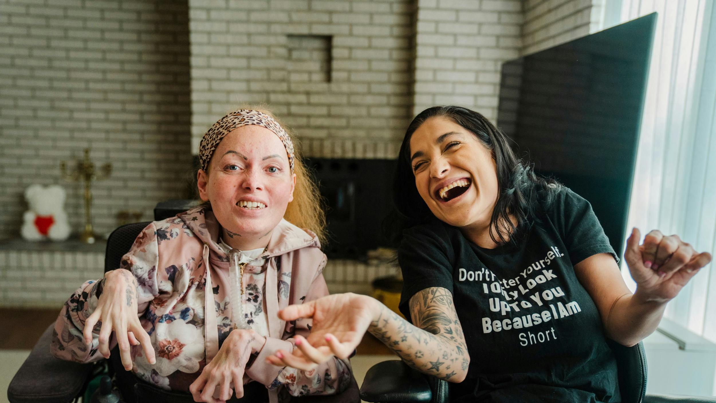Veninderne er som nat og dag, men der er alligevel meget, de kan blive enige om. For det første føler de sig ligesom alle andre mennesker, på trods af at de begge sidder i kørestol. For det andet har de aldrig nogensinde lyst til at skulle undvære hinanden.