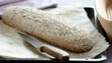 Rør gæren ud i vandet og tilsæt salt, honning og speltflager. Rør melet i, ælt dejen godt igennem og lad den hæve i 45 min. Slå dejen ned og tril den til en pølse. Læg dejen i en meldrysset hævekurv og lad den hæve et lunt sted i 1 time. Vend forsigtigt dejen ud på en plade med bagepapir og bag flutet ved 200° i ca. 30 min.