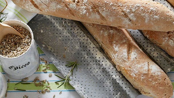 Skær dejen i 4 stykker, form dem til aflange flutes med let hånd og læg dem på en bageplade.