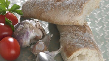 Kom bagepapir på en plade og pensl det med olivenolie. Form dejen med fugtig hånd til 3 store kugler og læg dem på pladen. Pensl med olie og dæk med film. Efterhæv brødet ½ time ved stuetemperatur. Fjern filmen og bag brødet ca. 20 minutter ved 225° på nederste ovnrille. Køl brødet lidt af på en rist og bræk det fra hinanden.