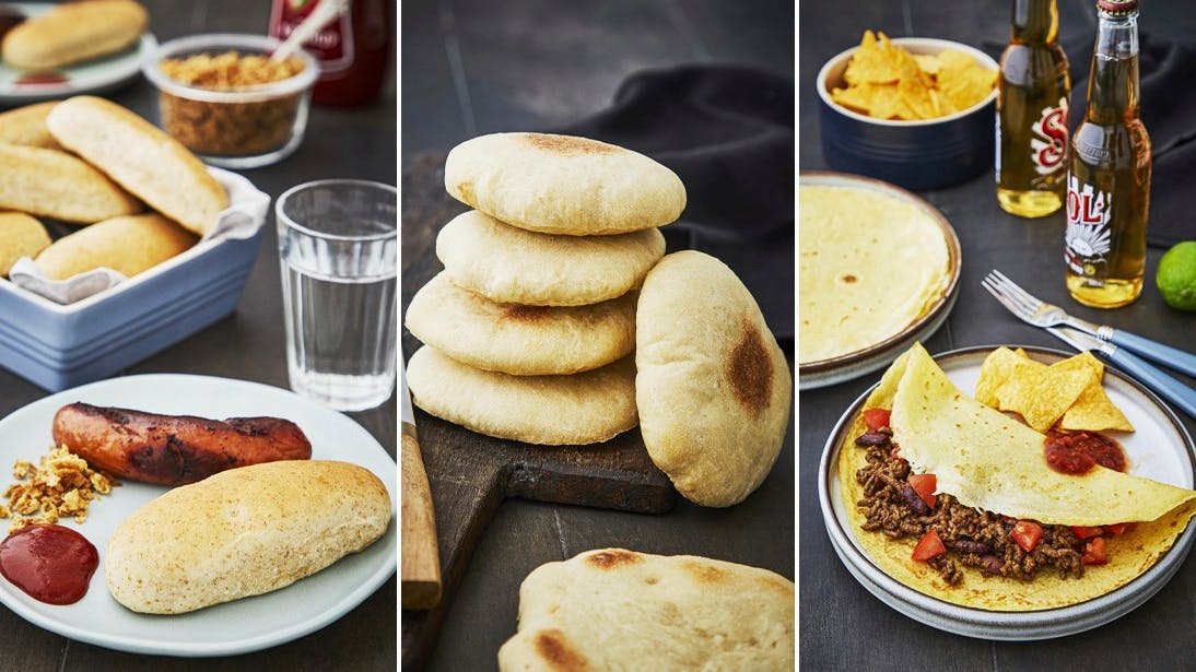 Lad dem efterhæve i 10-15 minutter, og tryk dem lidt flade igen. Vip brødene over på den varme plade, og nyd synet igennem ovnens vindue, når de efter et par minutter hæver kraftigt op. Bag i ca. 4 minutter, vend pitabrødene om, og bag dem færdige i 4-5 minutter ved 225°. Servér pitabrødene lune.