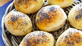 Rør gæren ud i mælken. Rør smør og vand sammen og rør det i mælken. Rør melet i lidt ad gangen og ælt til en glat og smidig dej. Lad dejen hæve tildækket ca. 30 min. Drys salt over dejen, ælt den igennem igen og del den i 10 stk. Form dem til boller, læg dem på en plade med bagepapir og lad dem efterhæve tildækket. Pensl med sammenpisket æg og drys med birkes. Bag de luftige boller ved 225° i ca. 15 min., til de er gyldne. Lad dem køle af på en rist.
