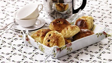 Bland gæren med sukkeret, så det smelter. Tilsæt salt, margarine og mælk og rør 2/3 af melet i. Rør sukat og rosiner i og ælt dejen sammen med resten af melet. Form dejen til 25 boller og sæt dem på en bageplade med bagepapir og lad dem hæve i 2 timer. Pensl med æg og bag bollerne ved 200° i 20 min.
