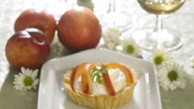 Fyld: Rør yoghurt og honning sammen. Skær nektarinerne i skiver. Læg yoghurt i skallerne lige inden serveringen og pynt med nektariner eller jordbær.