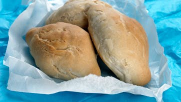 Dag 2. Ælt honning, salt og mel i den forhævede dej. Ælt dejen 5-10 min., gerne på maskine, til den slipper skålens sider. Hæver lunt tildækket i skålen 1 time. Læg dejen på et meldrysset bord og del den i 16 stykker. Tril dem til runde boller og rul dem spidse i enderne. Hæver tildækket på plade med bagepapir ca. 20 min. Spray bollerne med vand og bag dem på midterste rille ved 250° ca. 10 min.